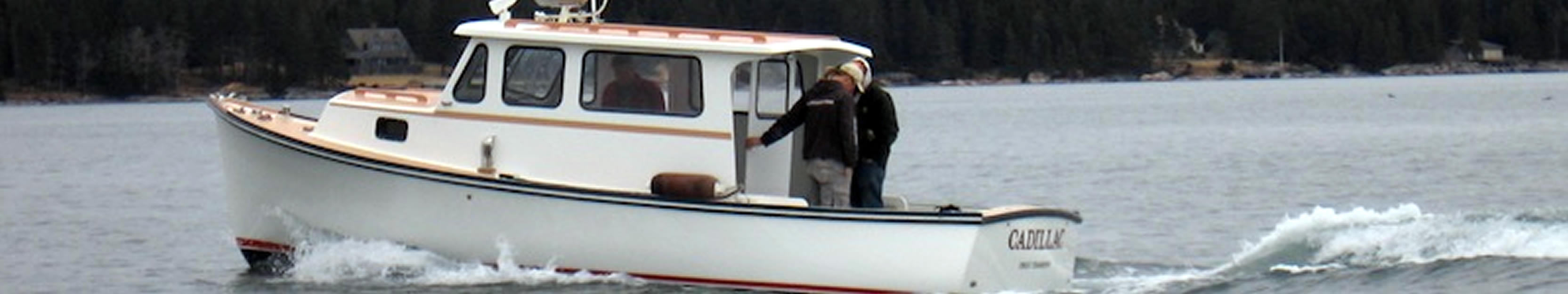 The Cadillac is a 26' lobster yacht with a fully-enclosed heated pilot house.
